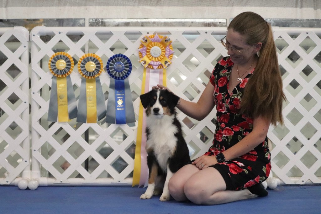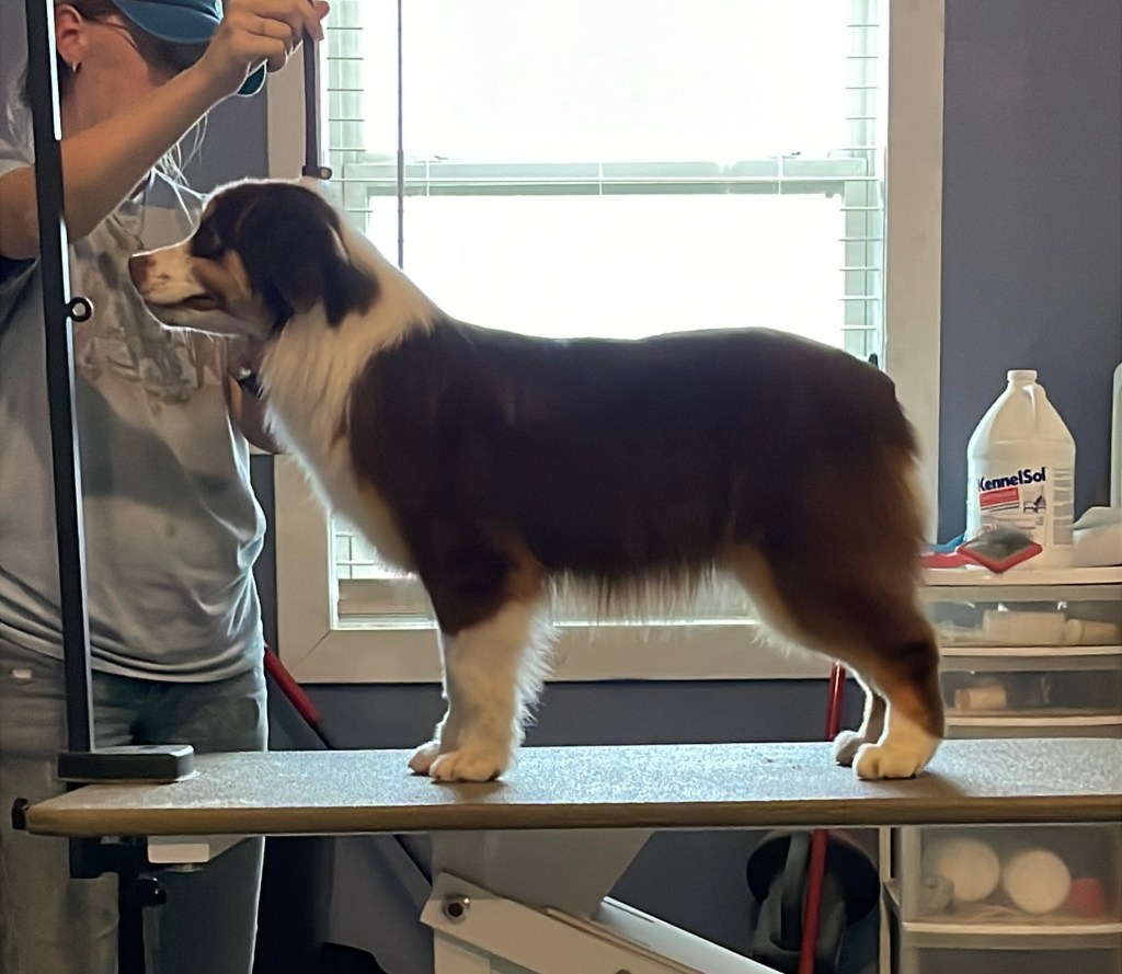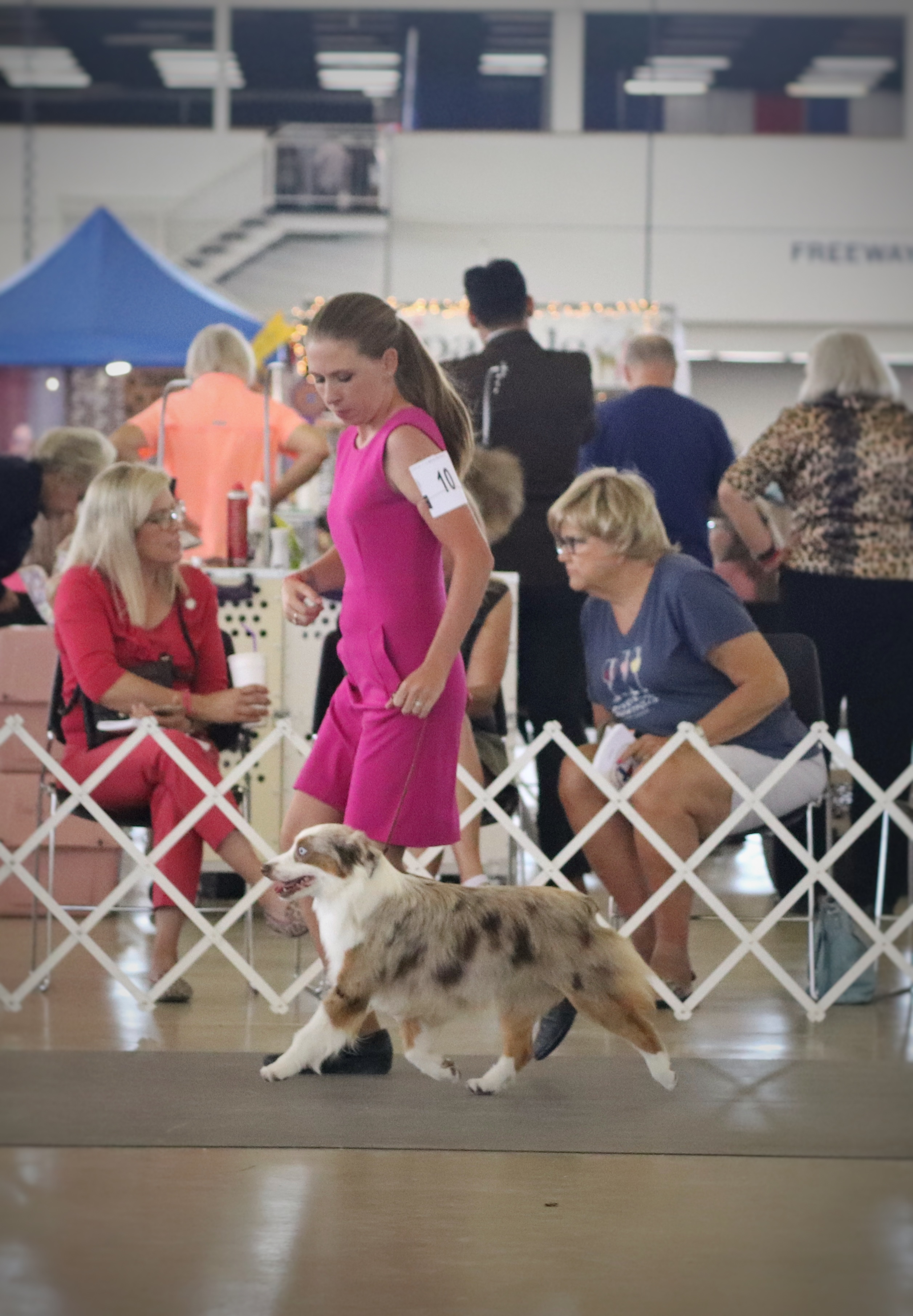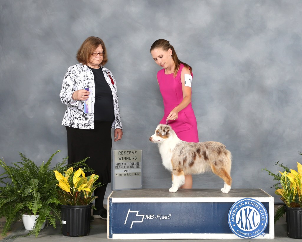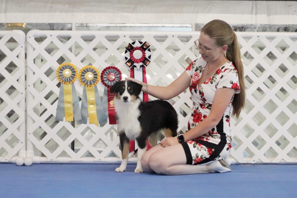 Georgia is the spitting image of her daddy, Royal! Georgia had an eye injury as a puppy so she’s behind in regards to getting her out to show but she’s figuring it out pretty fast so hopefully she’s going to get out there soon!