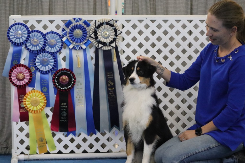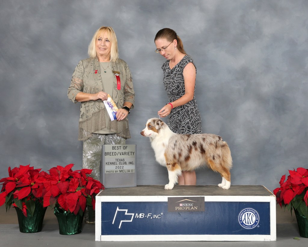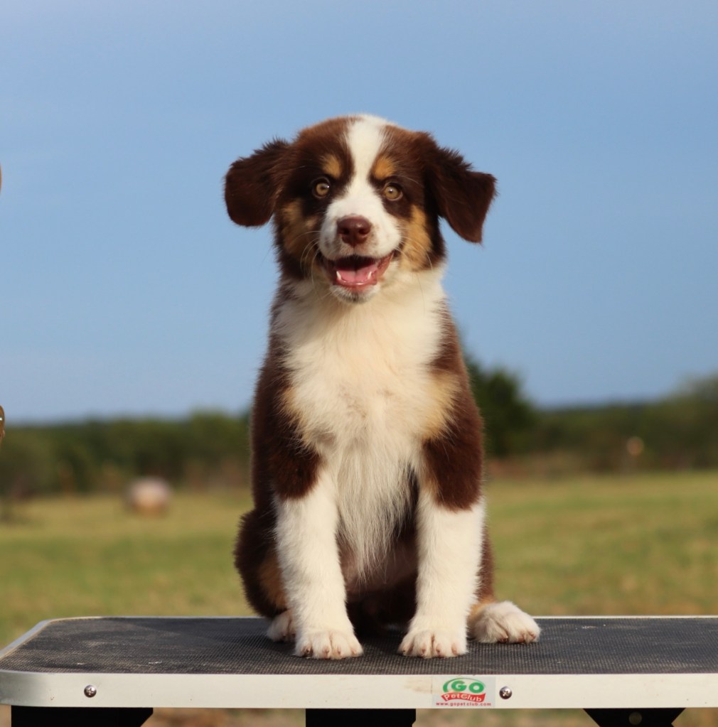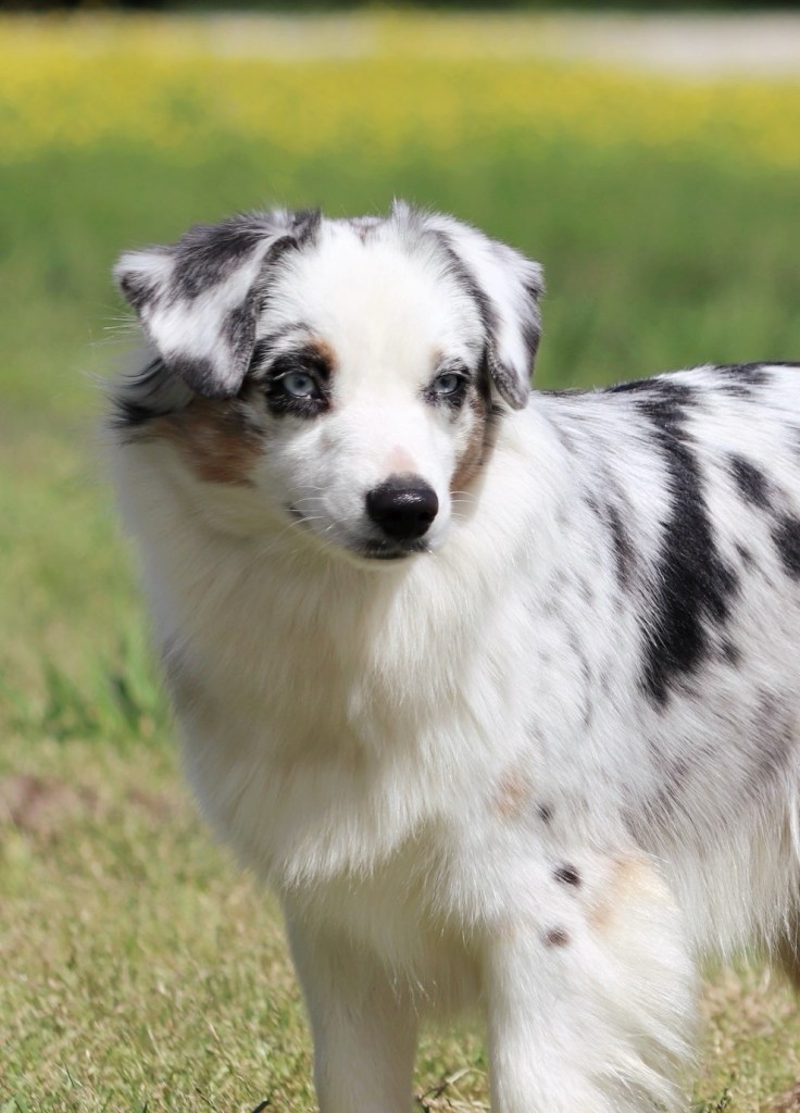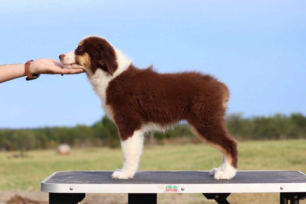 Georgia is the spitting image of her daddy, Royal! Georgia had an eye injury as a puppy so she’s behind in regards to getting her out to show but she’s figuring it out pretty fast so hopefully she’s going to get out there soon!